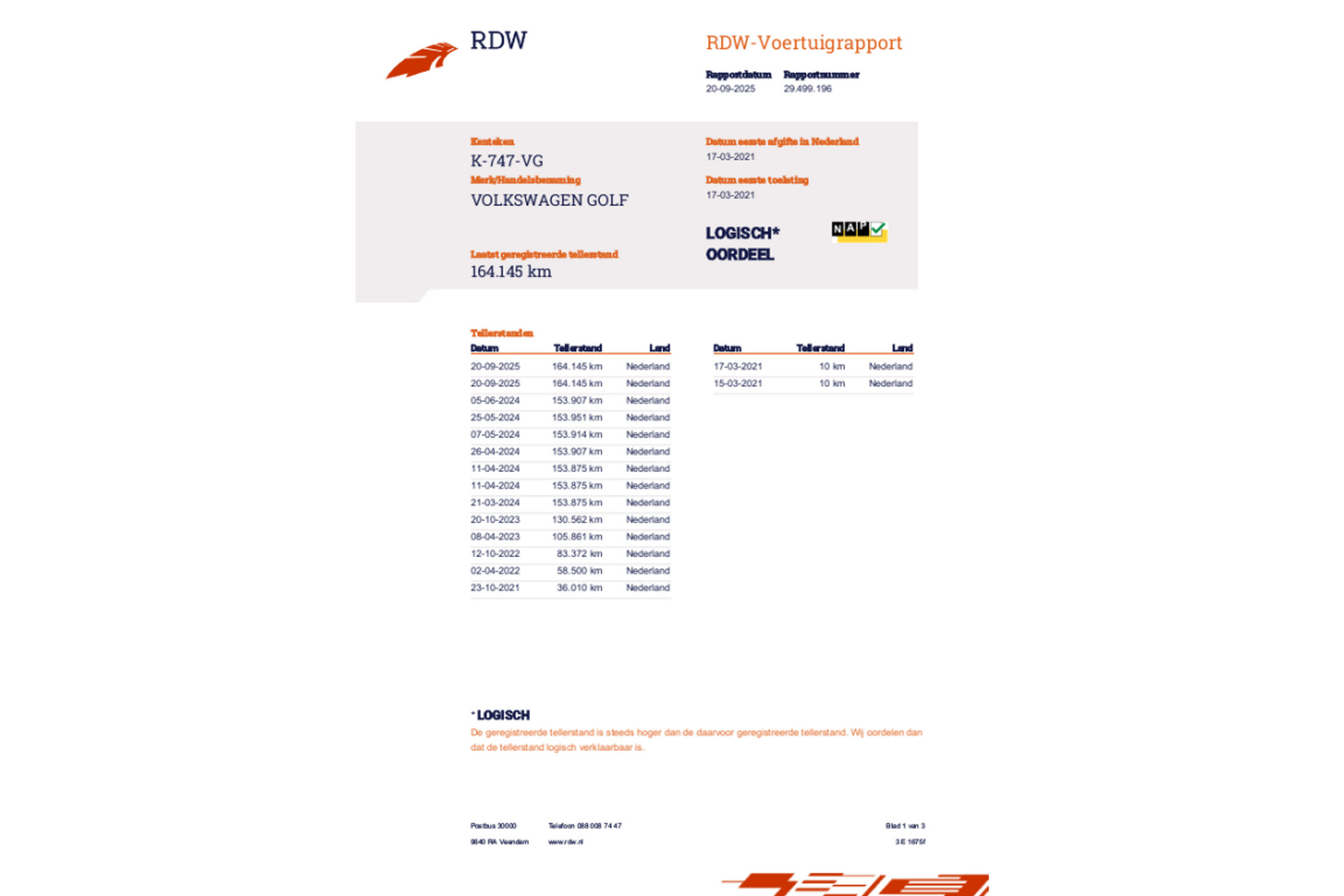 - Kilometerstand164.145 km