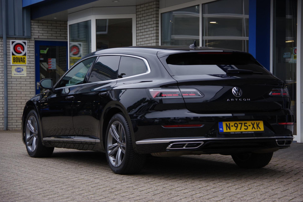 Origineel Nederlandse auto. Getoonde prijs is een rijklaarprijs. 12 maanden BOVAGGARANTIE bij prijs inbegrepen. Auto wordt rijklaar afgeleverd. Geen extra afleverkosten. De R-Line styling heeft deze Volkswagen Arteon Shooting Brake omgetoverd tot een regelrecht plaatje! Een belangrijke eigenschap van iedere Volkswagen is zijn duurzaamheid. Dat ziet u ook aan deze Arteon Shooting Brake. Met een viercilinder motor en een automatische transmissie beschikt deze Volkswagen over uitstekende prestaties. Een weldaad voor u en uw bijrijder: deze Volkswagen Arteon Shooting Brake heeft verwarmbare voorstoelen. Goeie looks? Jazeker! Maar de sportstoelen zorgen ook voor een goed gesteunde en comfortabele zit. Het interieur baadt in daglicht dankzij het elektrisch bediende glazen panoramadak. De elektrische achterklep opent met een druk op de knop, zodat u gemakkelijk toegang heeft tot de bagageruimte. Gewoon, omdat het kan. Deze Volkswagen Arteon Shooting Brake heeft zelfs een verwarmde achterbank. Tot de voorzieningen van deze auto behoren LED koplampen, warmtewerend glas, in delen neerklapbare achterbank, LED-achterlichten, verstelbare lendensteunen en verwarmde ruitensproeiers.
