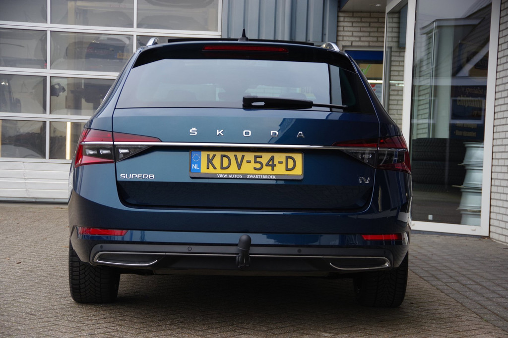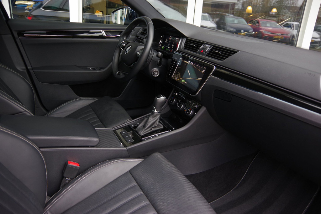 Getoonde prijs is een rijklaarprijs. 12 maanden BOVAGGARANTIE bij prijs inbegrepen. Auto wordt rijklaar afgeleverd. Geen extra afleverkosten. Bij het ontwerpen van de Skoda Superb Combi stonden uw comfort en uw veiligheid centraal. Heerlijk comfortabel zitten, en genieten van stijlvolle kwaliteit? Deze auto heeft een fraai lederen interieur. Deze Skoda Superb Combi legt bestuurder én bijrijder compleet in de watten met de verwarmbare voorstoelen. De sportstoelen zien er niet alleen prachtig uit, maar zijn ook functioneel, zoals u kilometer na kilometer zult merken. De elektrische achterklep opent met een druk op de knop, zodat u gemakkelijk toegang heeft tot de bagageruimte. Het panoramadak zorgt voor zicht, licht en een enorm ruimtelijk gevoel. Ook de passagiers worden verwend, door de verwarmde achterbank. De uitmonstering van deze auto wordt gecompleteerd door onder meer 18 inch lichtmetalen velgen, LED koplampen, extra getint glas, in delen neerklapbare achterbank en LED-achterlichten.